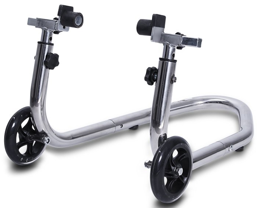 Paddock stands or Pit stands are used to securely suspend the motorcycle for maintenance with both wheels off the ground.